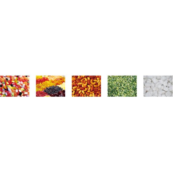 It is suitable for weighing granules, slices, rolls or irregular shaped products, such as candy, seeds, jellies, french fries, coffee granules, peanuts. Bulky foods, biscuits, chocolates, nuts, pet foods, frozen feed, etc. are also suitable for weighing small hardware and plastic components.